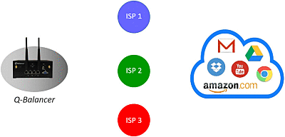 Q-Balancer 針對這問題的解決方案,是在每次外送流量請求產生時,即時攔截 DNS 查詢,並基於目標 IP 位址動態地建立路由規則。使企業能夠通過基於域名(而不是大量 IP 位址)設置規則,簡化網路管理工作。政策路由規則搭配網域名稱作為目的地,達成網路頻寬負載平衡與故障容錯轉移,甚至透過政策路由規則與網域名稱的搭配設置頻寬管理。在採用混合型態廣域網路的企業網路中,更能幫助企業有效而靈活的管理網路資源。
